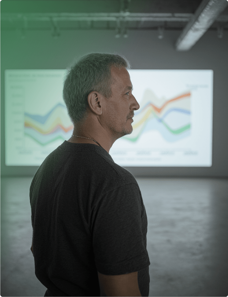 Er analysiert die Märkte wie ein Auktionator – indem er Preis, Volumen und Orderflow kombiniert, um exakt zu erkennen, wann institutionelles Kapital in den Markt fließt und wann es sich zurückzieht.